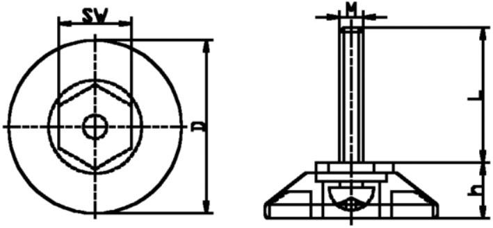 Stelvoet PP vast gemonteerde 6-kant bout