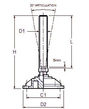 Machinestelvoet PA GLV 20° basc.+ 2 boringen Draadeind staal of RVS 303