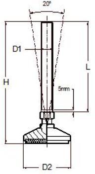 Machinestelvoet RVS 20° basculerend met rubber pad