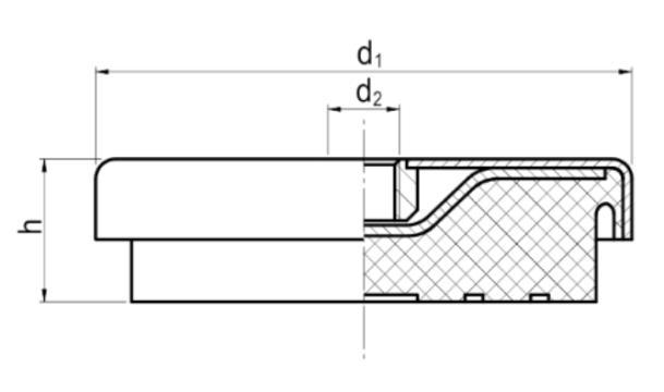 | Artikelcode | d1 | h min | h max | d2 | Load(N) | ||||